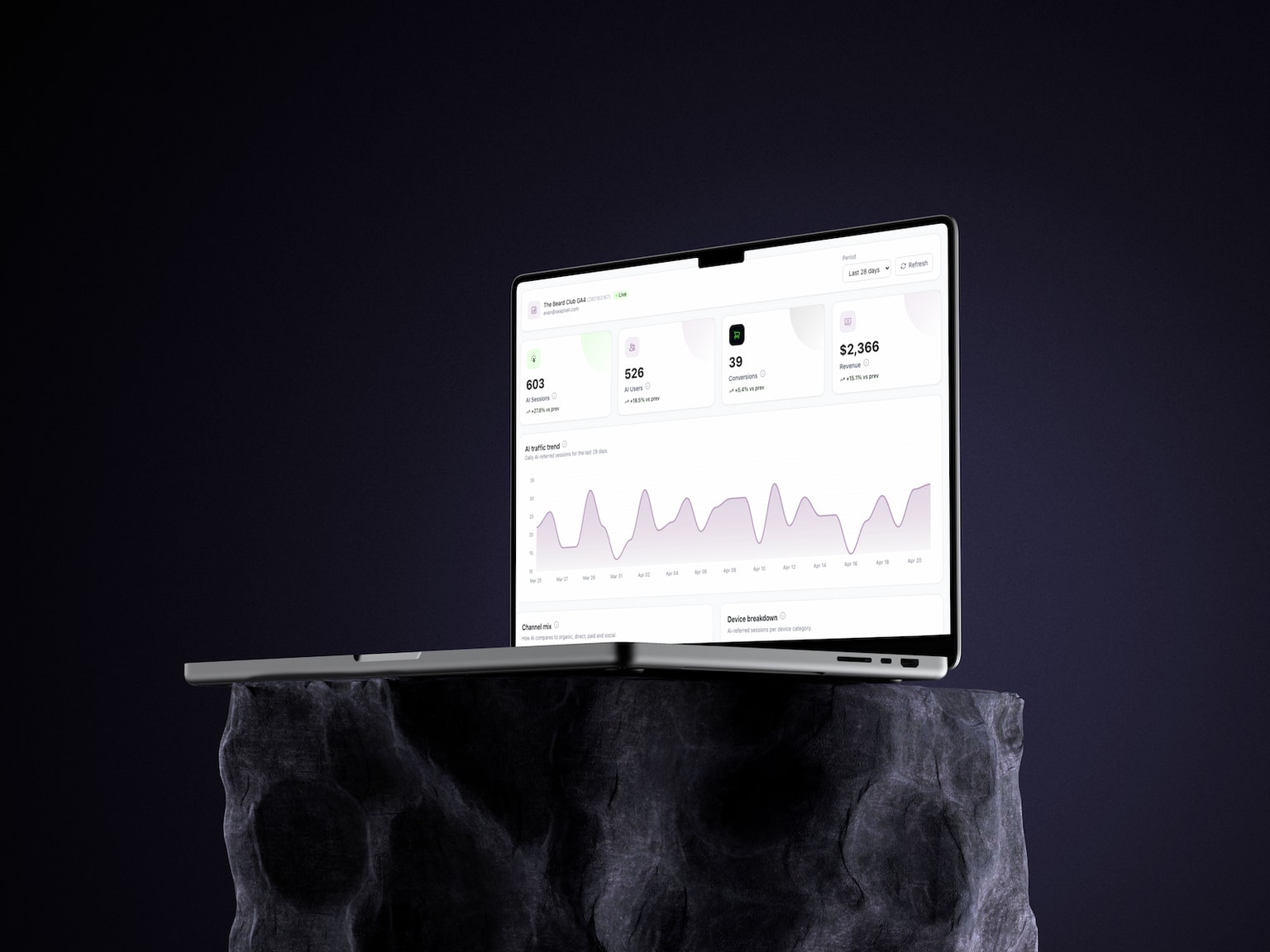 Two minutes to set up. Connect your Google Analytics and start seeing the data that GA4 buries.
